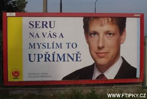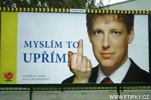 Reklamní kampaň našeho nového premiéra vyvolala spoustu zajímavých reakcí, v příloze je ukázka lidové tvořivosti, která došla na email serveru www.ftipky.cz :)
